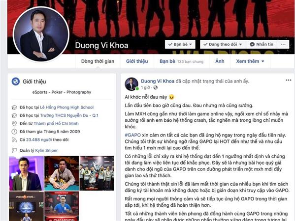 Ông Dương Vi Khoa, Giám đốc chiến lược của Gapo viết trên Facebook của mình, dù không phải lần đầu tiên làm mạng xã hội nhưng ngồi xem chỉ số CCU (số lượt người truy cập hệ thống cùng lúc-pv) mà những người phát triển sản phẩm Gapo không khỏi vui sướng, đến khi anh em kỹ thuật báo hệ thống tắc nghẽn mà trong lòng chỉ muốn khóc. "Có những lỗi chỉ xảy ra khi hệ thống đạt đến 1 ngưỡng nhất định và chúng tôi đang làm việc liên tục để khắc phục", ông Khoa viết.