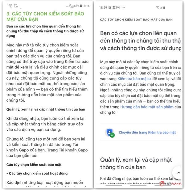 Phần Bảo vệ người dùng Gapo và Google y chang nhau.