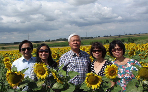 Giữa cánh đồng hướng dương dọc đường sang Áo
