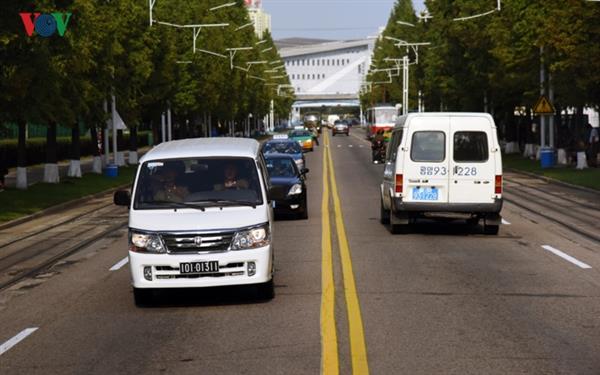 Các con đường ở Bình Nhưỡng, Triều Tiên thông thoáng, sạch sẽ bởi lượng xe cộ tham gia giao thông không nhiều. Không có tiếng động cơ ô tô gầm rú, không có tiếng còi xe hối hả và không có cả tiếng ồn ã của đám đông người dân khi di chuyển trên đường.