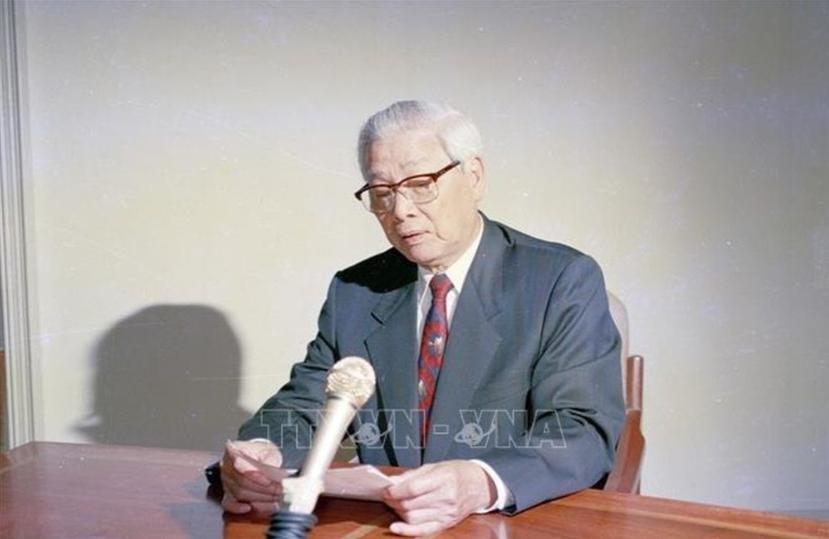 Rạng sáng 12/7/1995 (giờ Việt Nam), Thủ tướng Võ Văn Kiệt chính thức tuyên bố bình thường hóa quan hệ ngoại giao với Mỹ. Ảnh tư liệu: TTXVN