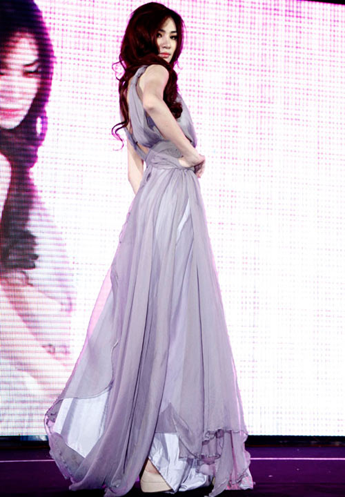 Trang phục dạ hội của Ngọc Oanh khá sexy và nổi bật