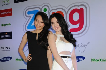 Cô tạo dáng cùng người mẫu Ngọc Thạch.