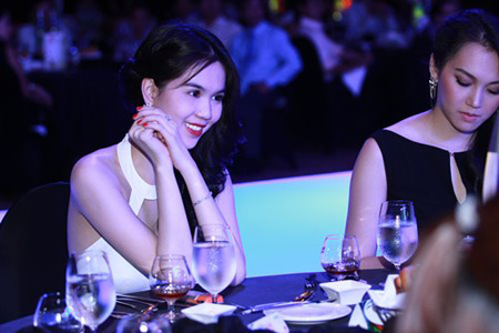 Cùng xem những bức hình Ngọc Trinh tươi tắn với chiếc váy mới trong bữa tiệc tối qua: