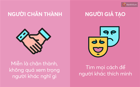 Người chân thành luôn đề cao sự chân thành trong các mối quan hệ. Người giả tạo thì tìm mọi cách, làm mọi việc để khiến người khác thích mình.