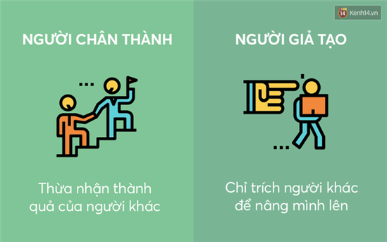 Những người chân thành luôn trân trọng và thừa nhận thành quả của người khác, chúc mừng thực lòng và lấy đó để học hỏi. Còn người giả tạo, nếu không phải là chỉ trích người khác để nâng mình lên thì lời chúc mừng của họ chưa chắc đã đáng tin.