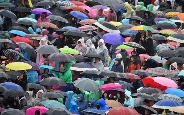 Dù trời mưa nhưng các tín đồ vẫn tập trung đông ở quảng trường St. Peter.