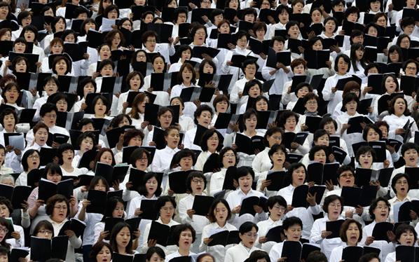 Tín đồ Thiên Chúa giáo người Hàn Quốc tham dự buổi lễ kỷ niệm dịp lễ Phục sinh thường niên được tổ chức tại Đại học Yeonsei, Hàn Quốc. Khoảng 10 nghìn người tham gia đã cầu nguyện cho một đất nước hòa bình và phi hạt nhân.