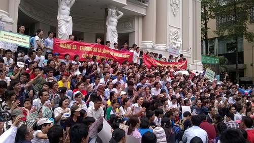 Hiện đám đông đã kín vườn hoa, rất nhiều đoàn đang kéo đến và đã phải đứng ở sân tượng đài. Nhiều nhóm đã hô vang "Việt Nam".