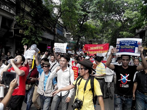 Vừa đi, đoàn người vừa hô vang đả đảo Trung Quốc và yêu cầu Trung Quốc rút ngay giàn khoan khỏi vùng biển của Việt Nam.