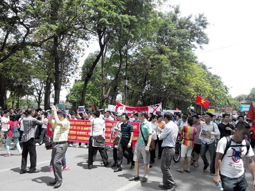 Lúc 9g45, đoàn người tiến về phố Điện Biên Phủ hướng về phía bờ hồ. Trong khi đó, một nhóm khác vẫn tập trung trước Đại sứ quan Trung Quốc để phản đối.