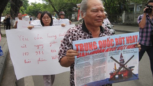 Trước đó, ngay từ sáng sớm, nhiều người dân đã tập trung và tuần hành theo các tuyến phố hướng về phía khu vực lãnh sự quán Trung Quốc để hô vang những khẩu hiệu phản đối, yêu cầu Trung Quốc rút giàn khoan 981 ra khỏi vùng biển của Việt Nam.