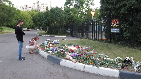 Là quốc gia có hãng hàng không bị thiệt hại, trước cửa Đại sứ quán Malaysia ở thủ đô Moskva suốt cả ngày 18/7 có nhiều người tới đặt hoa, nến và những món đồ chơi cho trẻ em... Họ không chỉ là những người dân Malaysia, họ là người thuộc nhiều quốc tịch khác nhau, nhưng phần nhiều là người dân Nga. Nhiều người đã viết những dòng chữ sẻ chia, bày tỏ lòng mình và như cảm thấy mình có lỗi với những người thiệt mạng.
