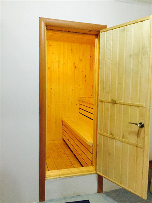Bạn tôi vừa tắm hơi từ căn phòng thiết kế theo kiểu dân dã của Nga ra. Tôi ngại cái món tắm hơi này lắm, vì không chịu được sức nóng mấy chục độ C ấy (chỉ vì nơi này không gian hơi hẹp, nếu có bể bơi  nữa thì rất tuyệt, nhất là sau khi đã tắm hơi xong)