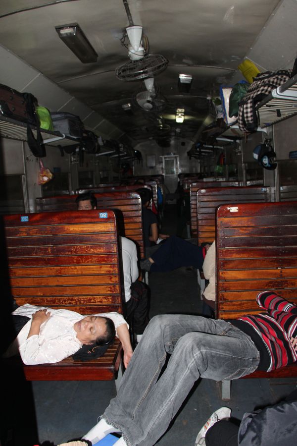 Trời ơi, đường sắt Việt Nam mấy chục năm nay (từ thời Pháp thuộc cả trăm năm) vẫn chỉ là rộng có…1 mét? Trong khi ở các nước tiên tiến tối thiểu là 1.40 mét! Đi trên những con tàu của họ mà cảm giác như đi trong nhà. Tiếng động cũng giảm. Còn tàu của ta ư? Biết nói thế nào nhỉ? Đã chòng chành lại ầm ầm nhức đầu kinh khủng. Chưa nói tới chuyện hành khách ngổn ngang nằm ngồi, bất cứ góc nào có thể. Một chi tiết hơi kì kì đập vào mắt tôi: Anh nhân viên phụ trách toa nằm còng queo trên chiếc nilon trải ngay dọc lối đi? Sao thế. Hỏi ra mới biết, chiếc giường tiêu chuẩn của anh đã…“nhường”(?) cho một vị khách với “giá thỏa thuận”!!! Chưa hết, ngay bên cửa ra vào toa và cả sát lối vào nhà vệ sinh cũng có một vài vị đang nằm choèo queo?! Và cái cảm giác vô cùng khó chịu khi chúng tôi phải chấp nhận nằm ở toa có đến…6 giường nằm! Điều mà bên Nga chưa từng có (thông thường chỉ có 4 giường). Bởi người ở dưới luôn phải gò mình, đúng là chỉ có nằm chứ không được phép ngồi? Bởi nếu anh ngồi thì đầu đụng trần giường trên và kịch trần toa. Thật là khó chịu, ai cũng kêu ca nhưng lực bất tòng tâm!