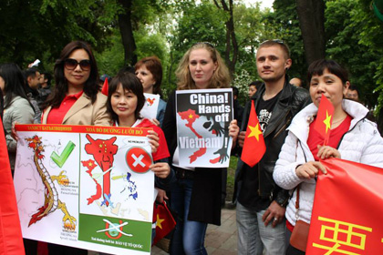 Một người trong số họ, chị Elena, giáo viên tiếng Việt Đại học Kiev nói: “Tôi là bạn của Việt Nam, tôi không thể làm ngơ trước sự xâm lấn của Trung Quốc đối với biển đảo Việt Nam!”.