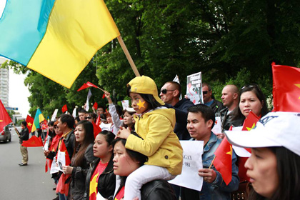 Bé còn quá nhỏ để hiểu rằng, rất nhiều cô chú người Việt Nam và bè bạn người Ukraine với rất nhiều cờ và các biểu ngữ bằng ba thứ tiếng Việt, Ukraine và Trung đã hô vang các khẩu hiệu phản đối nhà cầm quyền Trung Quốc ngang ngược, bất chấp luật pháp quốc tế, đặt giàn khoan Hải Dương 981 trái phép trong vùng chủ quyền biển của Việt Nam. Một hành động xâm lược!