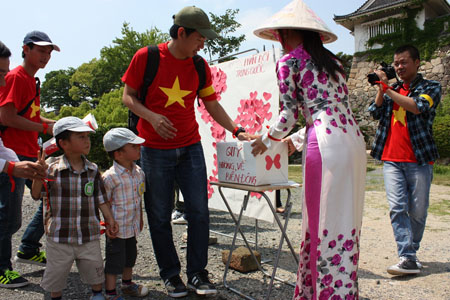 Cũng tại nơi đây, hình bản đồ Việt Nam đã được ghép lên bởi hàng trăm trái tim có chữ ký của những người tham gia. Thông qua đó, họ gửi đi thông điệp yêu nước, với nội dung cộng đồng người Việt ở Okayama luôn hướng về Tổ quốc thân yêu, sẵn sàng cũng Chính phủ và nhân dân đấu tranh vì chủ quyền của dân tộc.