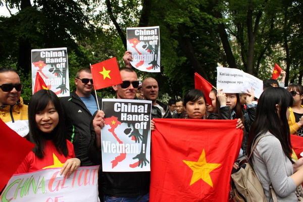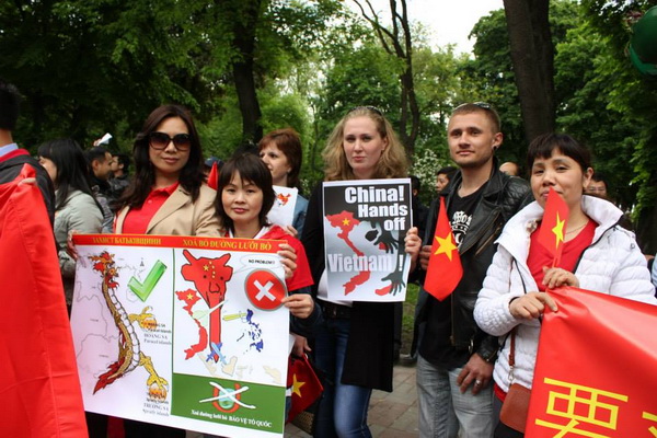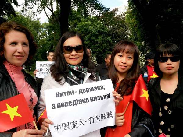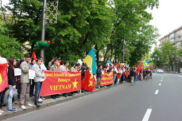 Cuộc tuần hành, mít-tinh của cộng đồng người Việt Nam tại Ucraina nhằm phản đối Trung Quốc xâm phạm chủ quyền của Việt Nam diễn ra lúc 15 giờ 30 phút theo giờ địa phương, thu hút hơn 200 người tham gia. Đoàn người đã tuần hành từ bến tàu điện ngầm đến trước Đại Sứ quán Trung Quốc tại địa chỉ nhà số 35, phố Grushevskovo, Kiev; dương cao các biểu ngữ, băng rôn bằng tiếng Việt, tiếng Ucraina, tiếng Anh và tiếng Trung; cùng nhau hô vang các khẩu hiệu yêu cầu Trung Quốc ngừng ngay các hành động vi phạm luật pháp quốc tế và các thỏa thuận, hiệp định đã ký kết giữa hai nước.