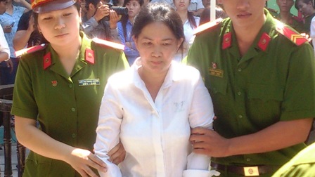 Dư Kim Liên bị giải ra xe sau khi tòa tuyên án tử hình.