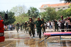 Bộ đội đã phối hợp với lực lụợng Công an cùng tham gia chữa cháy.