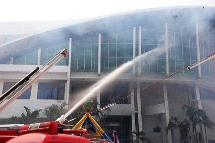 Hiện trường vụ cháy Nhà văn hoá trung tâm tỉnh Quảng Bình.