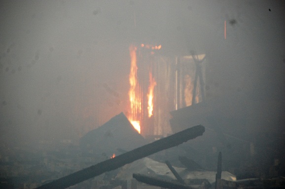 Lửa vẫn bốc cháy ngùn ngụt trong các phòng của Nhà văn hóa.