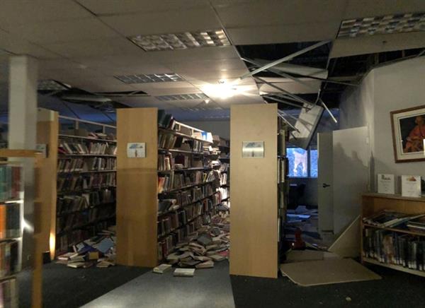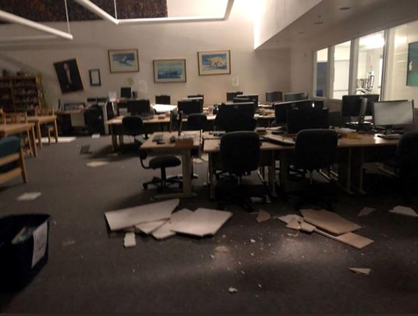 Một văn phòng bị xáo trộn sau trận động đất. Ảnh: Twitter