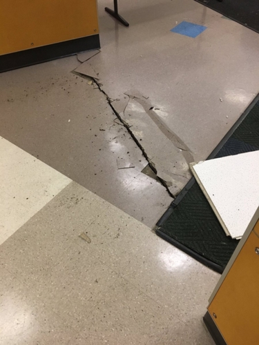 Sàn nhà bị gãy nứt. Ảnh: Twitter