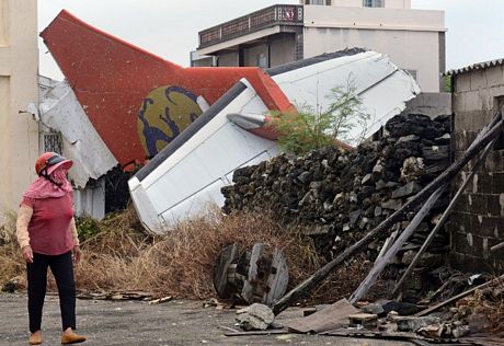 Chiếc máy bay đã rơi trúng một khu dân cư gần sân bay Magong trên quần đảo Bành Hồ.
