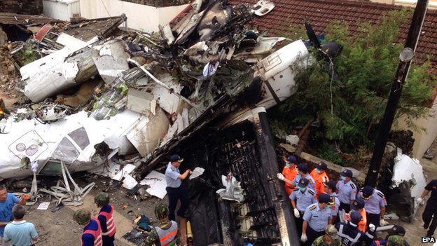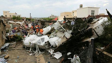 Nhiều ngôi nhà đã đổ sập hoặc hư hỏng nặng khi bị chiếc máy bay của hãng TransAsia Airways chở 58 người rơi trúng trong vụ tai nạn thảm khốc vào tối qua. 48 người đã thiệt mạng và 10 người may mắn sống sót.