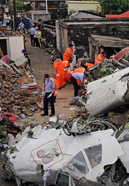 Hiện trường vụ tai nạn máy bay tại quần đảo Bành Hồ của Đài Loan.