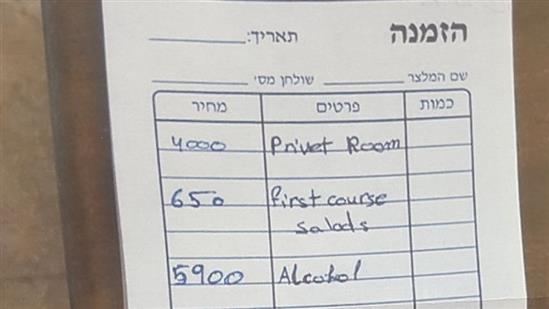 Hóa đơn bữa ăn trị giá hơn 97 triệu đồng cho nhóm khách TQ của một nhà hàng Israel (Ảnh: Israel Incoming Tour Operators Association)