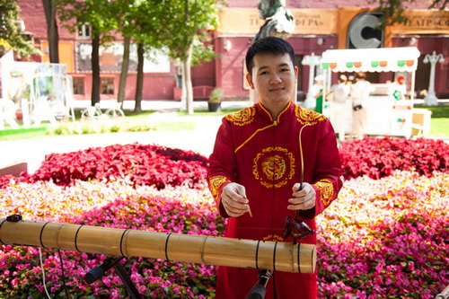 Nghệ sĩ Đức Hiếu, người sử dụng cả Đàn bầu, Nhị và Đàn T"rưng