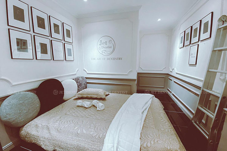 Đây chính là điều khác biệt của Jet Dentist dành riêng cho các khách hàng cần theo dõi sau điều trị hoặc cần thời gian phục hồi giữa các bước trong quy trình hoàn thiện nụ cười. Hệ thống phòng nghỉ được thiết kế sang trọng với đầy đủ các tiện ích tạo cảm giác thoải mái cho mọi khách hàng. Tại đây khách hàng có thể tận hưởng một bữa ăn được chuẩn bị chu đáo, với menu được chuẩn bị bởi các đầu bếp cao cấp cho phù hợp với điều kiện sức khỏe răng miệng hiện tại của khách hàng.