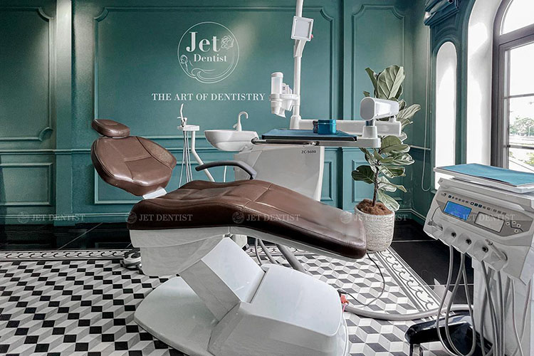 Không dừng lại ở đó, mỗi phòng nha tại Jet Dentist đều được thiết kế theo phong cách tân cổ điển đầy tinh tế và trang nhã nhằm tạo nên một không gian giàu tính nghệ thuật, xóa nhòa không gian nha khoa truyền thống thô cứng, xua tan những lo lắng thường trực của khách hàng mỗi khi nghĩ đến nha khoa.