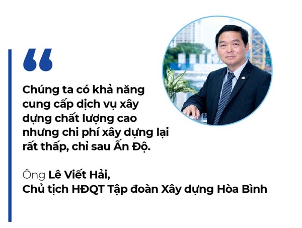 “Chúng ta có khả năng cung cấp dịch vụ xây dựng chất lượng cao nhưng chi phí xây dựng lại rất thấp, chỉ sau Ấn Độ”, ông Lê Viết Hải, Chủ tịch Hội đồng Quản trị HBC, cho biết. Tính cạnh tranh của nhà thầu Việt Nam không chỉ ở yếu tố nhân công, mà còn cả về vật liệu xây dựng cũng như dịch vụ tư vấn thiết kế, giám sát thi công, quản lý dự án và các dịch vụ liên quan khác.