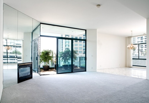 Căn hộ nằm tại khu chung cư cao cấp Blair House tại Los Angeles, rộng 250m2, có hai phòng ngủ, một vài phòng còn lắp tường kính và cả gương lớn để Psy luyện vũ đạo.