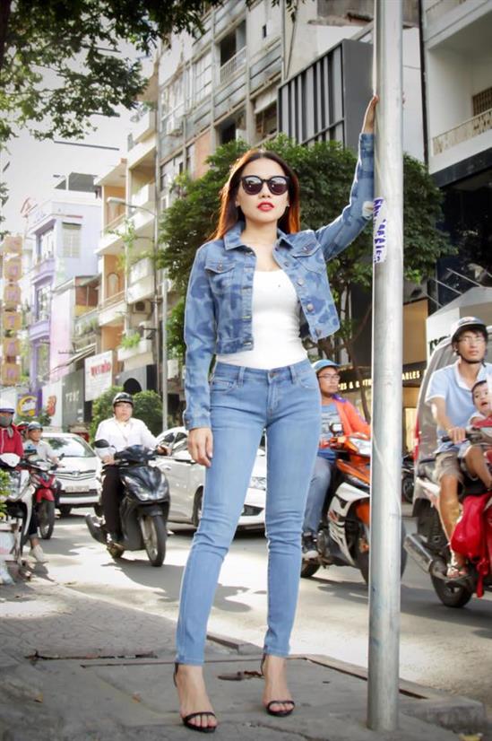 Jeans là chất liệu được nữ MC xinh đẹp ưa chuộng.