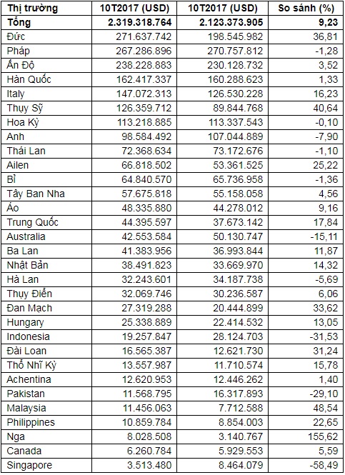 Thị trường nhập khẩu dược phẩm 10 tháng 2017