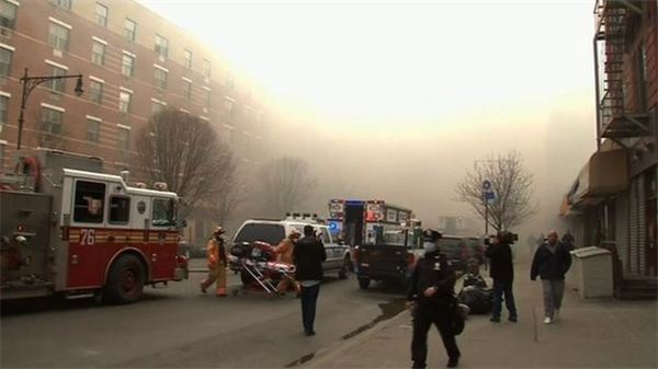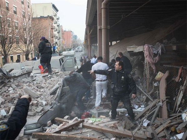 Lực lượng cứu hỏa, cảnh sát lao tới hiện trường vụ nhà sập trên đại lộ Park và đường 116 để cứu người ngay sau khi thảm kịch xảy ra vào khoảng 9h30 hôm 12/3 theo giờ địa phương.