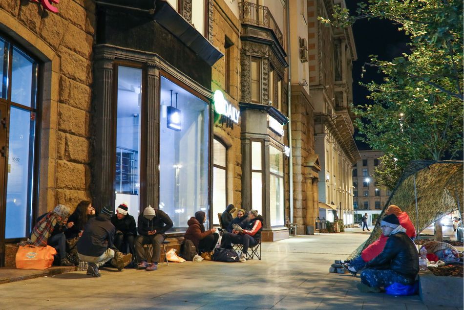 Đây là cách mà người dân giải trí, giết thời gian trong lúc xếp hàng để chờ mua iPhone sớm nhất.