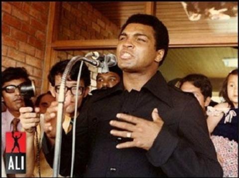 Nhà vô địch quyền Anh hạng nặng Muhammad Ali (1942-2016) từng phát biểu thẳng thắn về nhiều vấn đề chính trị, bao gồm việc công khai phản đối chiến tranh Việt Nam. Năm 1967, Ali bị bắt tại Mỹ vì chống lại yêu cầu gia nhập quân ngũ. Nhưng dù bị tước mọi danh hiệu khi đang ở đỉnh vinh quang của sự nghiệp quyền anh và cấm thi đấu trong 5 năm vì điều này, ông vẫn kiên quyết bảo lưu quan điểm của mình. Tay đấm từng chia sẻ trong một thư ngỏ vào thời điểm này: