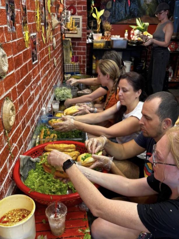 "Những người Việt Nam có mặt tại tiệm đã hỗ trợ chuẩn bị nguyên liệu, hướng dẫn chúng tôi cách nướng bánh trong lò, thứ tự các nguyên liệu bên trong ổ bánh mì. Chúng tôi nghĩ bánh mì là đặc sản của Việt Nam, lại có thể ăn nhanh gọn, không cần nấu, đủ dinh dưỡng", cô chia sẻ với Tri Thức - Znews.
