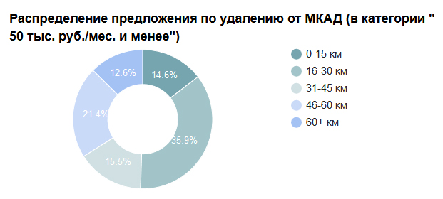Biểu đồ: nhu cầu thuê nhà ngoại ô Moskva tính theo khoảng cách từ đường MKAD đến nhà thuê