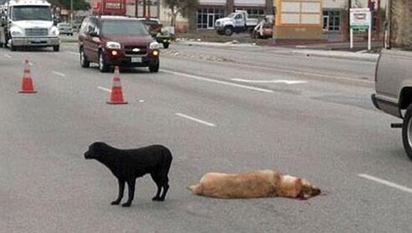 Chú chó bất chấp nguy hiểm nằm bảo vệ xác bạn trên xa lộ: Bạn của chú chó giống Labrador ở Mỹ không may thiệt mạng trong vụ tai nạn giao thông. Chú chó đã khiến nhiều người qua đường cảm động khi bất chấp nguy hiểm bảo vệ xác bạn trên xa lộ. Nhìn thấy cảnh tượng trên, một tài xế đã tìm vật cản báo hiệu cho người đi đường dễ dàng nhìn thấy và tránh chúng. (Ảnh: AP).