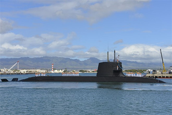 Tàu ngầm phi hạt nhân lớp Soryu là cỗ máy chiến tranh dưới nước uy lực hàng đầu thế giới hiện nay. Soryu được trang bị động cơ không khí độc lập AIP, cảm biến tìm kiếm mục tiêu tiên tiến, hệ thống vũ khí cực mạnh biến nó thành một sát thủ vô hình dưới nước. Cảm biến chính của tàu ngầm là hệ thống định vị thủy âm ZQQ-7 cùng radar tìm kiếm mục tiêu mặt nước ZPS-6F. Tàu ngầm Soryu được trang bị 6 ống phóng ngư lôi 533 mm. Ống phóng này được sử dụng để phóng ngư lôi Type-89 hoặc tên lửa chống tàu UGM-84 Harpoon. Soryu có lượng giãn nước khi lặn 4.200 tấn, độ sâu lặn tối đa 500 mét, phạm vi hoạt động 6.100 hải lý. Ảnh: Wikipedia