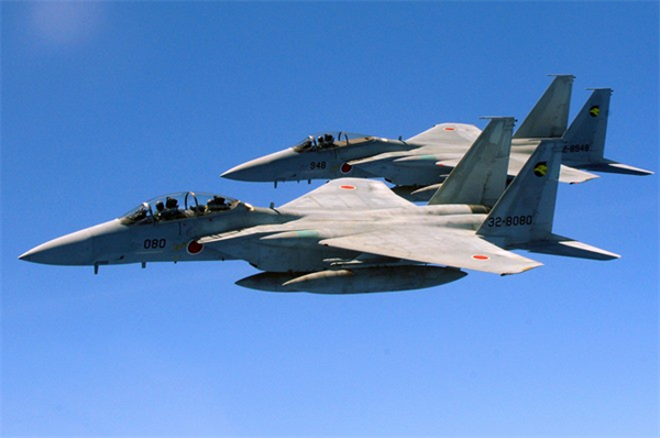 F-15J cũng là một biến thể của F-15 sản xuất tại Nhật Bản theo giấy phép từ Boeing, Mỹ. Về cơ bản F-15J tương tự F-15C của Không quân Mỹ. Tuy nhiên, F-15J sử dụng một số thiết bị điện tử do Nhật Bản sản xuất . Vũ khí chủ lực của nó là tên lửa không đối không tầm xa AAM-4 tầm bắn 100 km. Hiện nay F-15J cùng với F-2 là những tiêm kích chủ lực của không quân Nhật Bản. Ảnh: Wikipedia