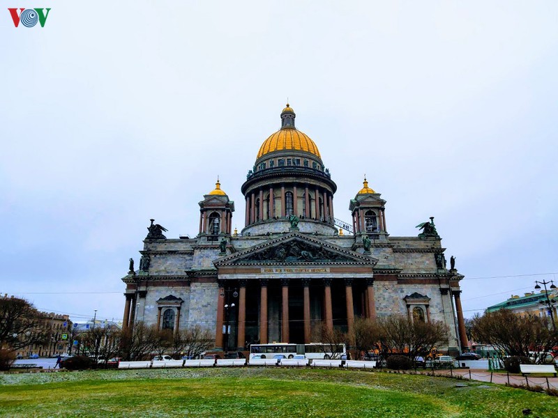 Nhà thờ Thánh Isaac được xây dựng từ năm 1858, thiết kế mái vòm đặc sắc không chỉ lớn nhất nước Nga mà còn có tấm ảnh hưởng lớn đến các quốc gia trên thế giới. Độ cao từ chân lên đến đỉnh tháp là 101m, đây là nhà thờ cao thứ tư trên thế giới. Mái vòm chính được thiết kế đường kính 26m, ước tính được mạ bởi 100kg vàng. Du khách có thể mua vé lên mái nhà thờ để quan sát thành phố.