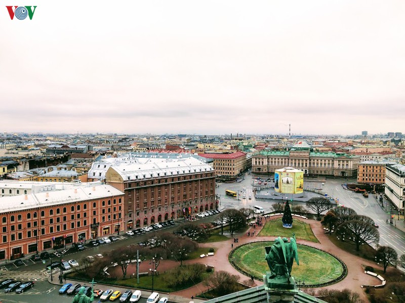 Từ trên mái nhà thờ Thánh Isaac có thể phóng tầm mắt ra xung quanh ngắm toàn bộ thành phố Saint Petersburg.
